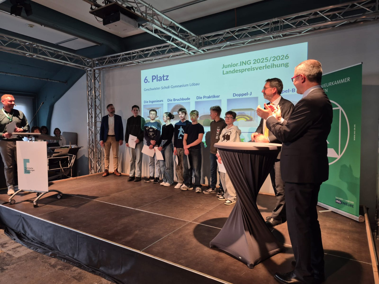 Am 14.04.2026 fand die Preisverleihung des Junior.ING Schülerwettbewerbes statt. Die 5 Teams: „Doppel-J", „Die Ingenieurs", „Die Bruchbude", „Doppel B" und „Die Praktiker" belegten beim Wettbewerb: „Arena - gut überDACHt", den 6. Platz.